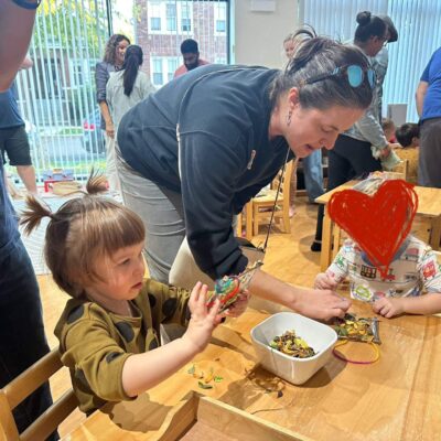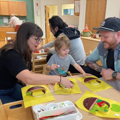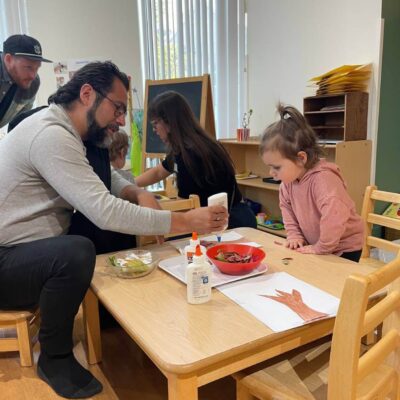nature. The laughter and chatter echoed through the hallways as children and parents worked